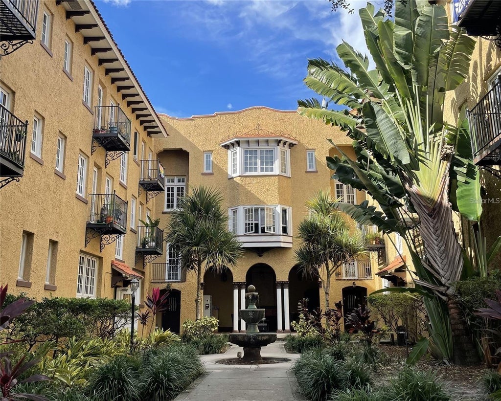This one-bedroom, one-bath condominium is located on the third floor of Melrose Landing, a historical condominium building built in 1925 with 35 units in the desirable Hyde Park. The superb location and quaint neighborhood offer shopping, coffee shops and restaurants just a few blocks away from Bayshore Boulevard and Tampa Bay. The unit comes with hardwood floors in the bedroom and living room, ceramic tile flooring in the kitchen and bath. Kitchen with stainless steel appliances, hardwood cabinetry, granite countertops and a washer/dryer combo. Balcony with westerly exposure overlooking the nicely landscaped courtyard with water fountain and covered seating area.